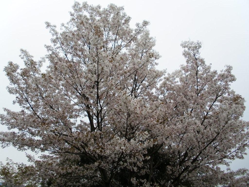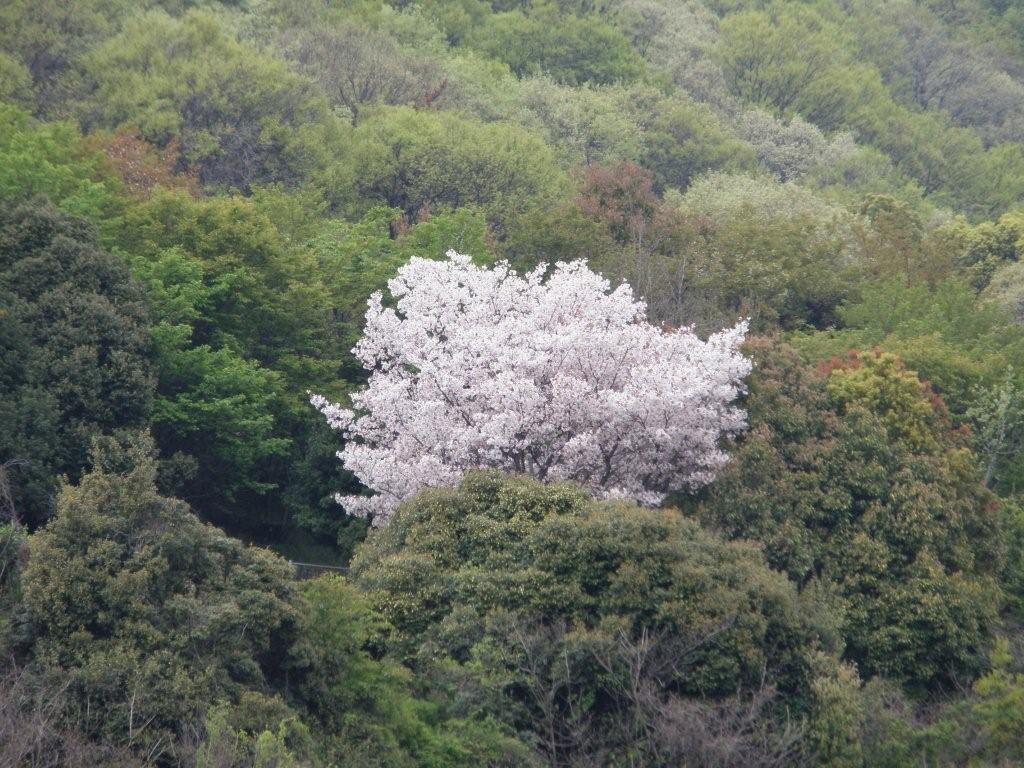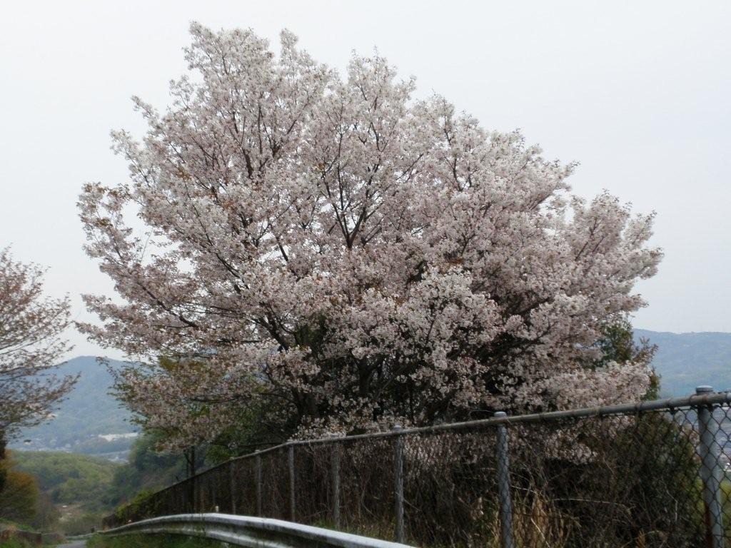 そこからさらに奥に畔道があり、あぜ道を進んでいくと、でっかい山桜の木があります。